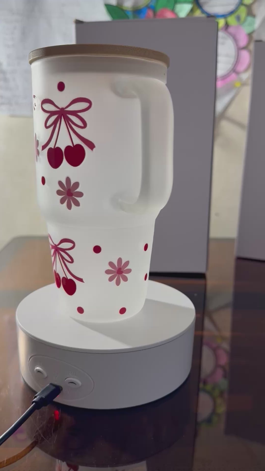 To protect the integrity of the bamboo lid and the vibrant cherry design, hand wash only is recommended. Do not microwave. Dry the bamboo lid thoroughly after washing to prevent moisture buildup.